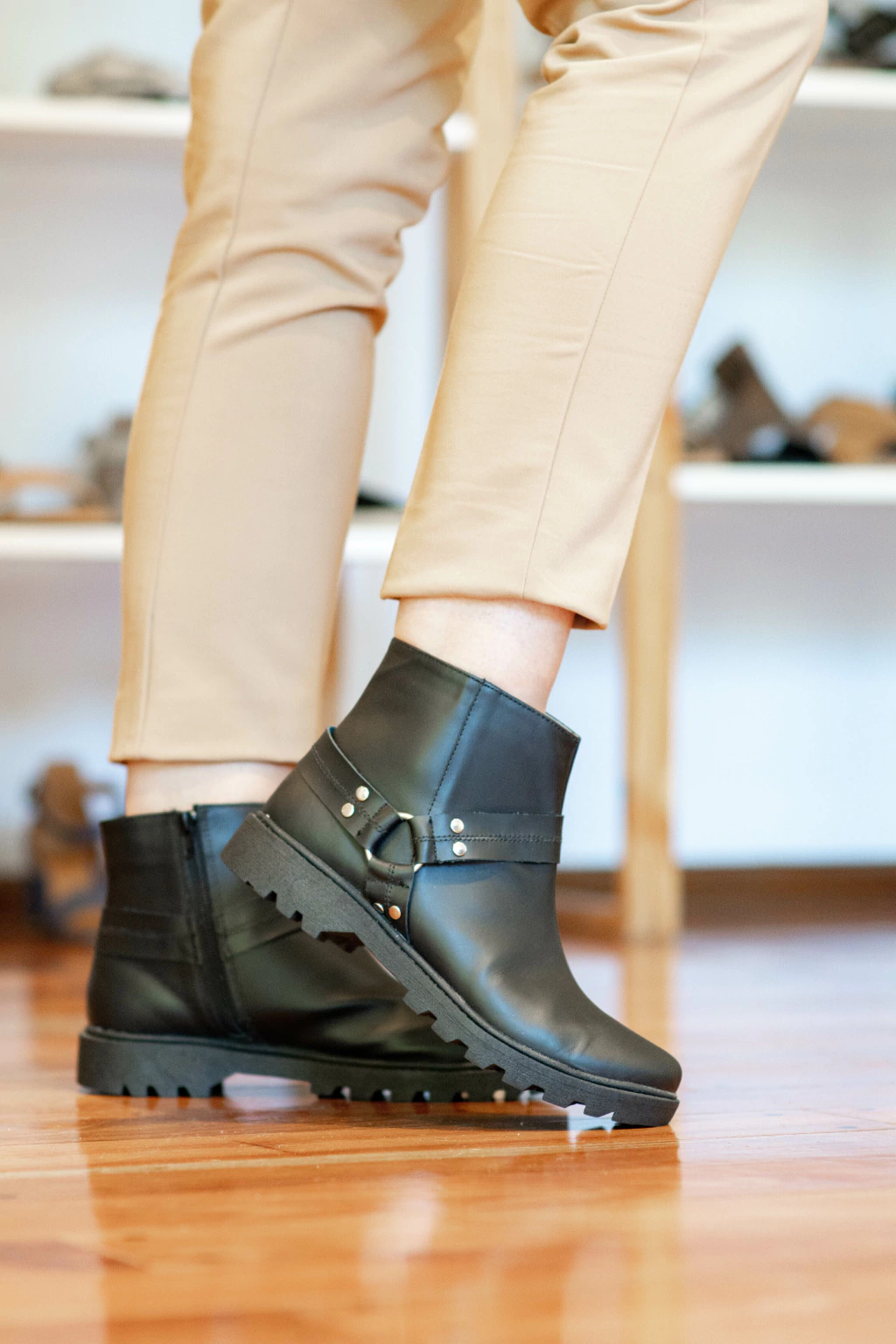 - Cierre Lateral: El cierre lateral facilita la entrada y salida de las botas, mientras que el cinto fijo en el otro lado agrega un toque de estilo.