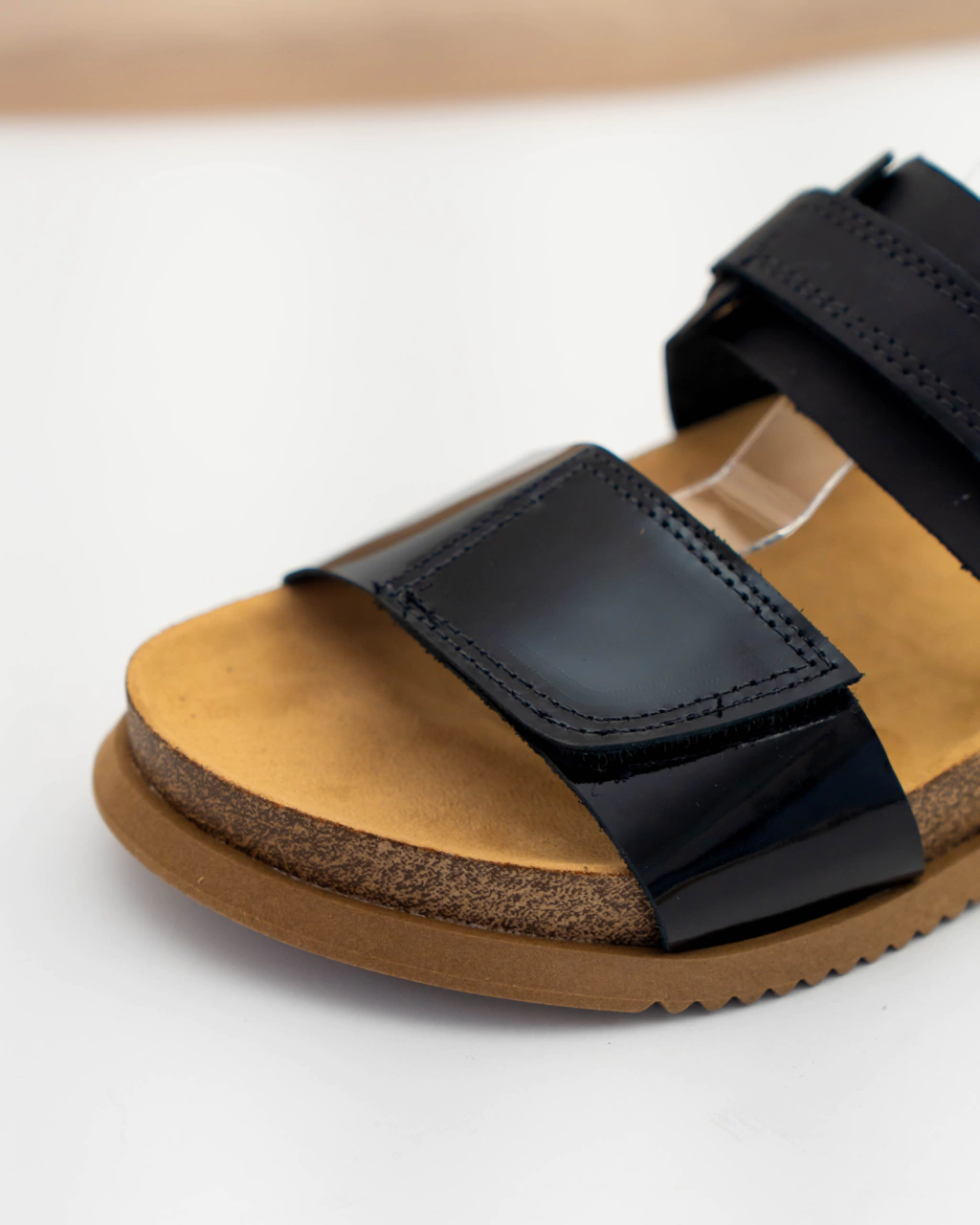 Con una base tipo birk y confeccionada en cuero negro, este modelo es un clásico que nunca pasa de moda. Ideal para acompañarte desde el día hasta la noche, combinando con cualquier outfit con elegancia y versatilidad.